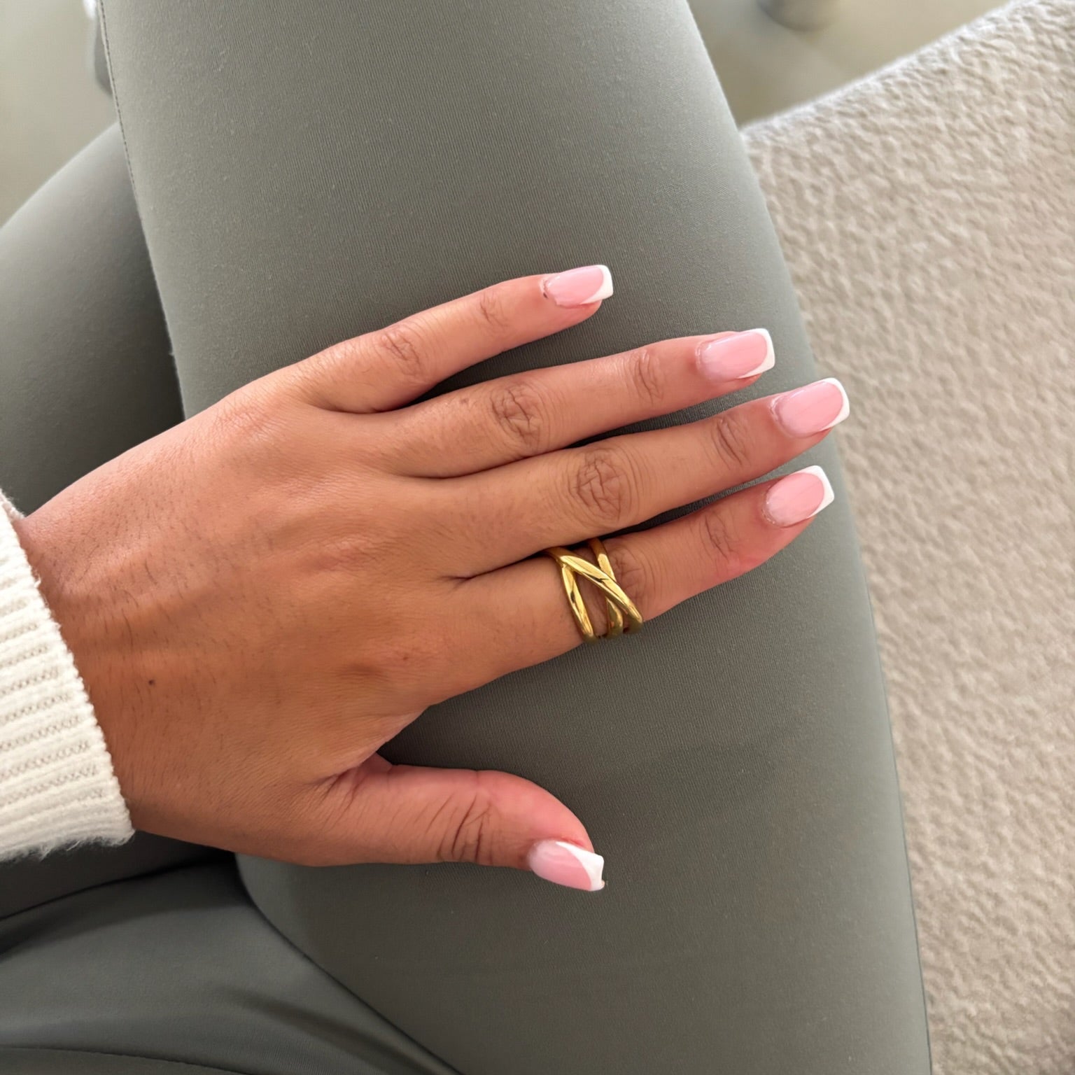 Sophisticated and modern, this wide gold-plated stainless steel wrap ring is a timeless essential for any jewellery collection. Its sleek, fluid design makes it perfect for stacking or wearing solo as a statement piece.
