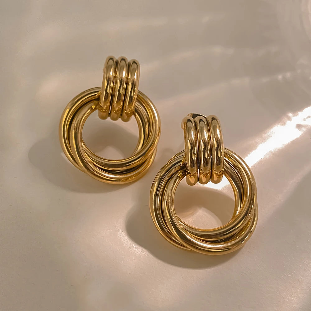 Modern and eye-catching, these stainless steel knot stud earrings add a bold twist to classic style. With their smooth, textured design and gold-plated finish, they’re the perfect statement accessory for elevating both casual and formal looks.